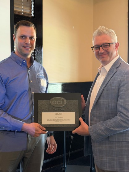 Associate Principal Jacob Borgerson, a materials engineer in our Houston office, has been honored with the L. Blake Fentress Award from the Houston Chapter of the American Concrete Institute (ACI). This award recognizes an outstanding member who demonstrates leadership and excellence in their field and has dedicated unselfish service to the chapter.