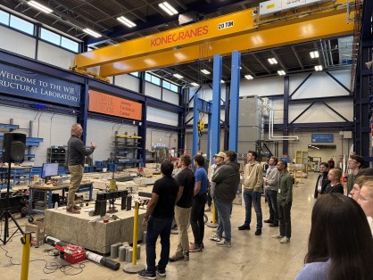We recently welcomed students and faculty from Purdue University College of Engineering’s “Failures and Forensics in Our Built Environment” class to tour our Janney Technical Center structural and materials science laboratories. Students participated in a variety of hands-on activities that culminated in a live structural load test of reinforcing steel.