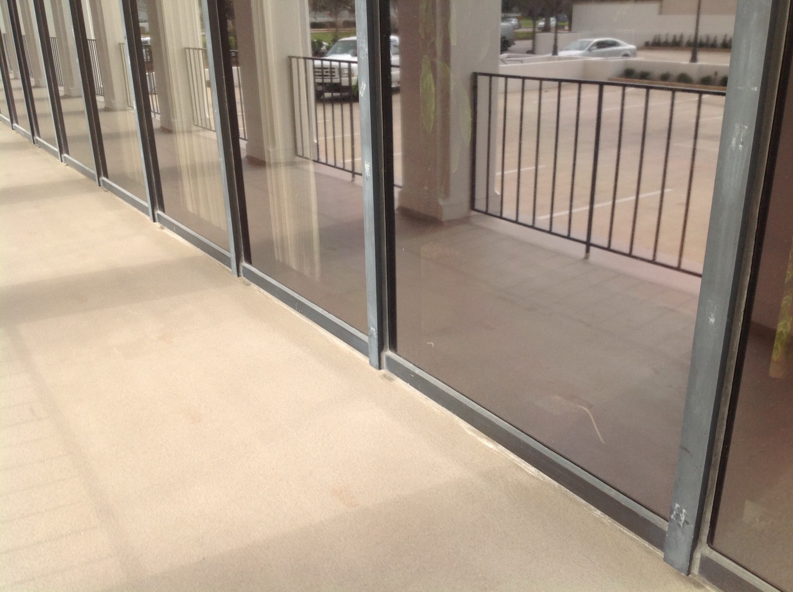 WJE developed waterproofing repair documents intended to eliminate the water leaks at the occupied spaces below the first floor breezeway with considerations for minimizing disruptions to the tenants during the repair work. The waterproofing repair developed by WJE consisted of removing the existing concrete topping slab placed on the breezeway concrete structure, routing and sealing cracks on the concrete deck, placing a new concrete topping, and applying a liquid-applied waterproofing membrane over the topping slab. A decorative top coat with broadcast aggregate was specified to address the aesthetic requirements of the project. Also, at the main entrance of the building where the owner elected to place limestone pavers, WJE developed repair documents for a below-grade liquid-applied waterproofing system.