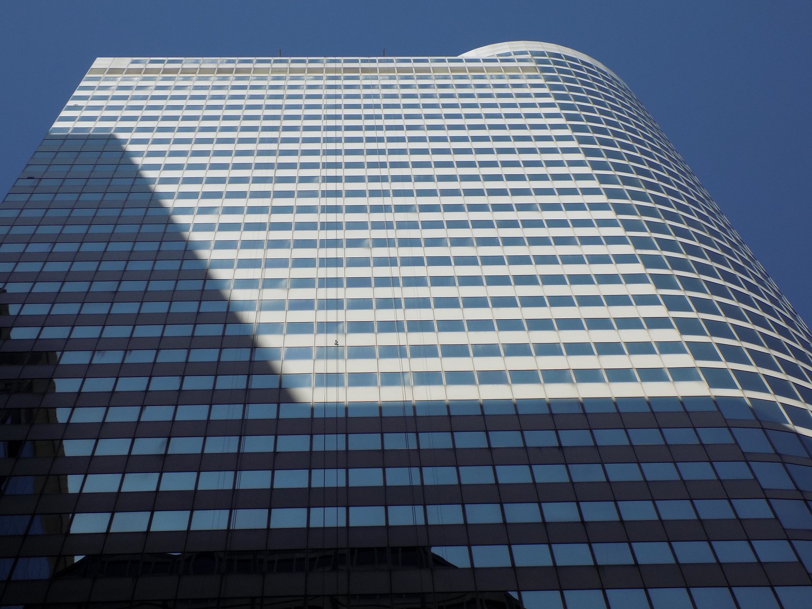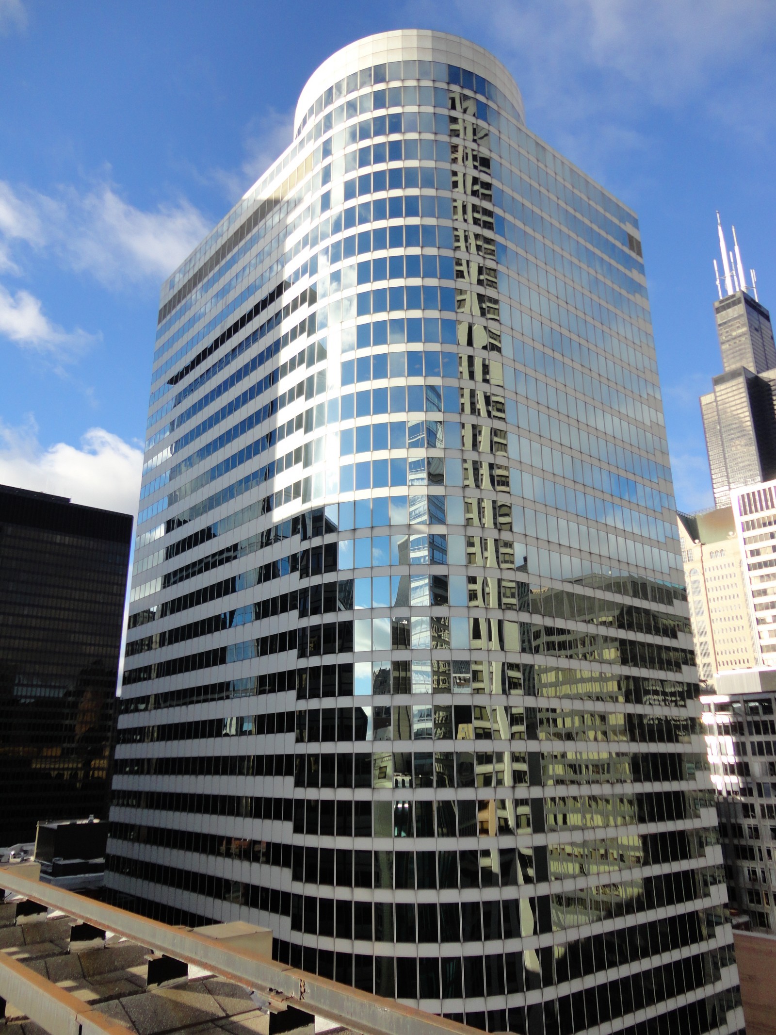 The 55 West Monroe building, constructed circa 1977, is a forty-one-story, 473-foot-tall reinforced concrete structure, clad with an aluminum and glass curtain wall. The building is rectangular in plan with a rounded facade at the northeast corner. The roof construction consists of an eight-inch-thick, two-way, reinforced concrete flat slab that is supported by concrete columns.