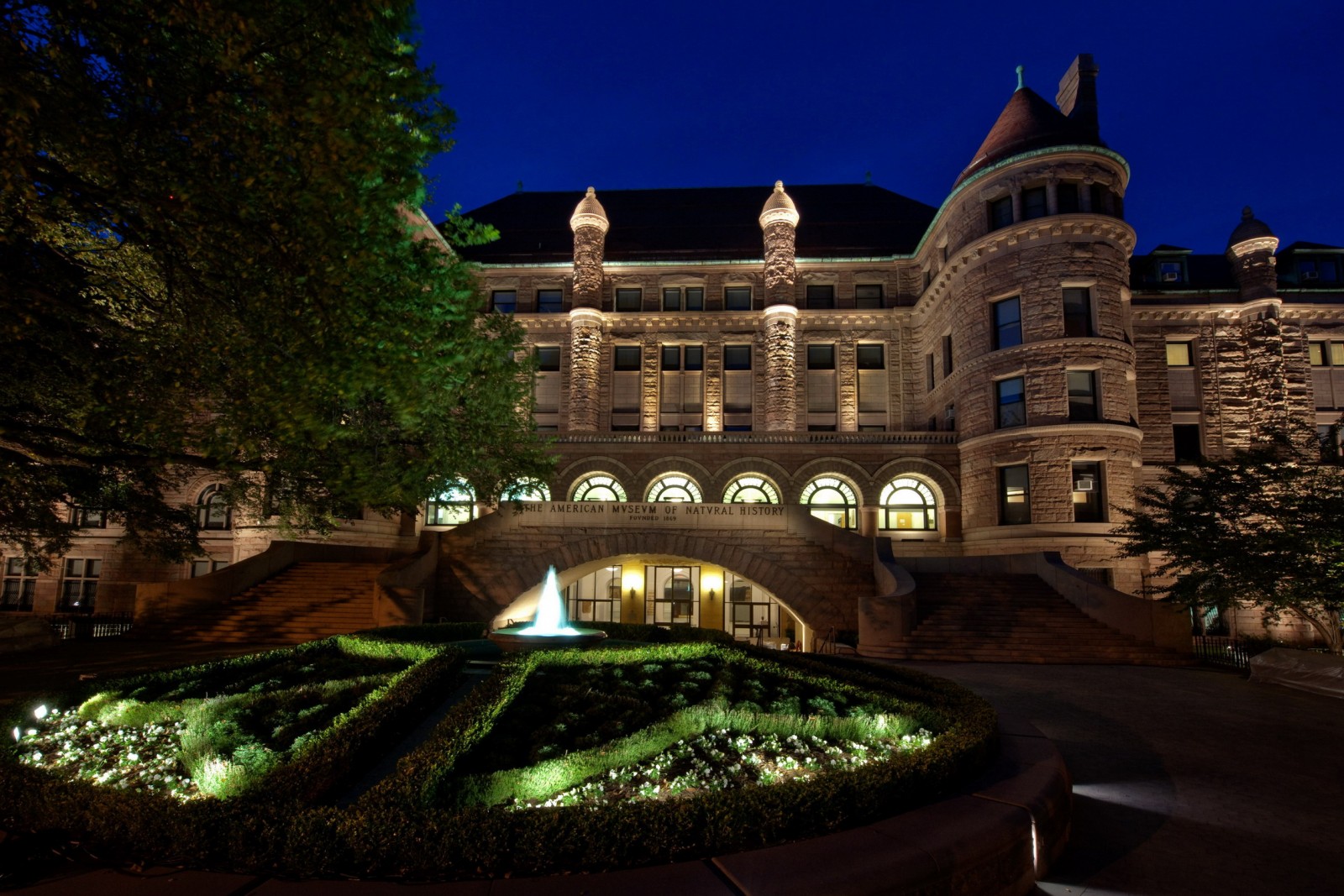 The architectural firm of Cady, Berg & See designed the Romanesque Revival-style Seventy-Seventh Street wings of the American Museum of Natural History. Construction was completed in the 1890s. The granite facades on the museum's wings include a monumental granite-clad stairway and porte-cochere; cherry wood framed double hung windows; and red, fish-scale slate roofs.
