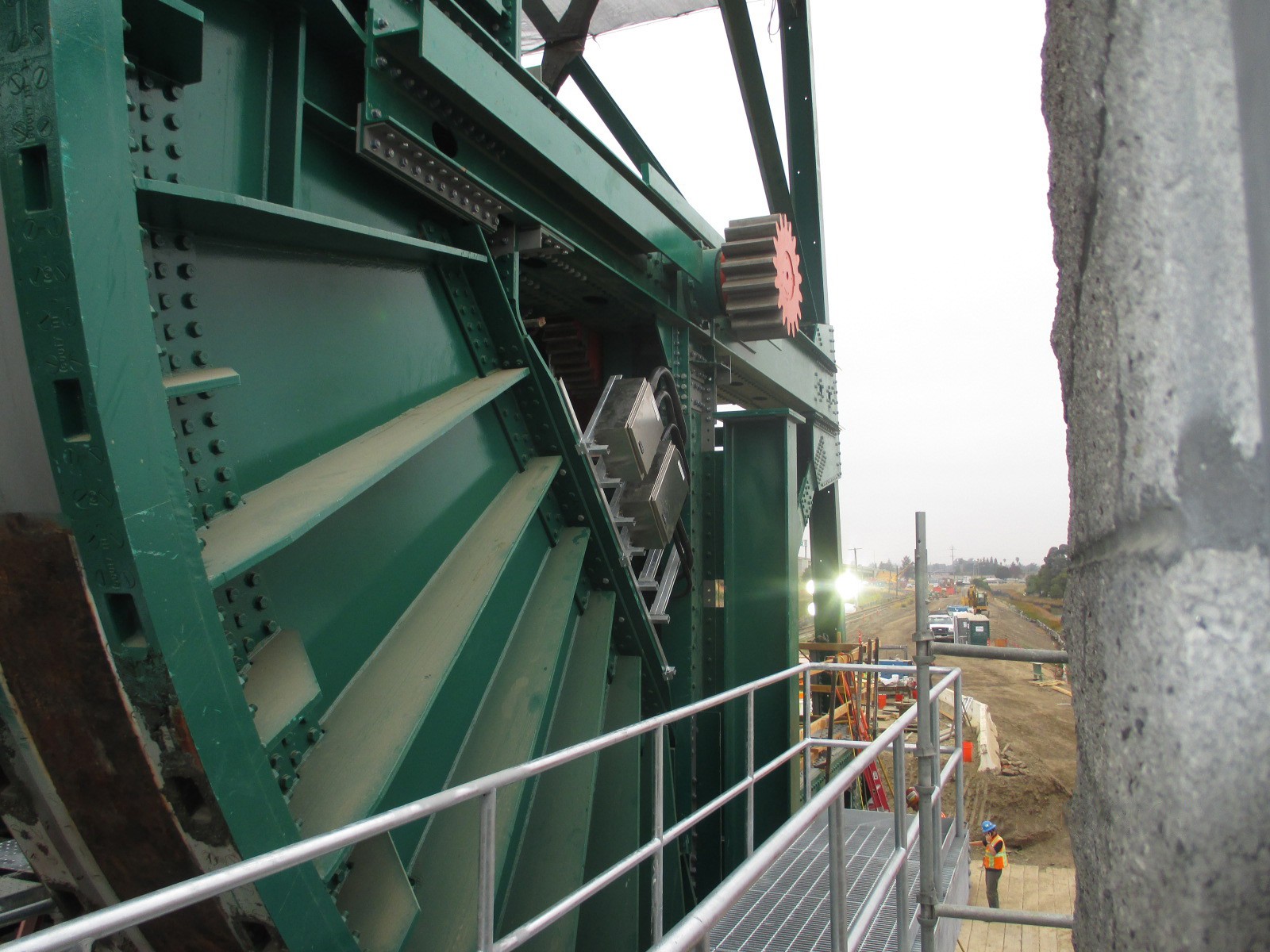 WJE’s design services included a condition assessment of the existing structural and mechanical components as well as design for major mechanical rehabilitation and complete replacement of the electrical power and control systems, including interfacing with the railroad signal system. WJE’s mechanical engineering services included design verification of all existing span drive machinery for conformance to AREMA specifications; fully closed and fully open air buffers and curved and flat tread plates for conformance to applicable specifications; design of new machinery at the high-speed end of the span drive; reinforcement of machinery supports; design of new toe span locks; design of fully open span locks to meet seismic requirements; development of construction staging to maintain uninterrupted rail service; and development of inspection and alignment criteria.