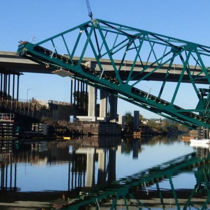 As part of the $428 million project undertaken by SMART to link downtown San Rafael to the Sonoma Airport, Shimmick Construction, Inc. was awarded a $68.7 million contract that included the replacement of the existing Haystack Landing Bridge over the Petaluma River to connect trains between Marin and Sonoma. Rather than refurbish the existing circa 1903 Haystack Landing Bridge at a cost of $20 million, SMART acquired a Scherzer rolling lift bascule railroad bridge from BNSF Railroad in Galveston, Texas, for $4.2 million. The new bridge is expected to have a life span of seventy-five to one hundred years.