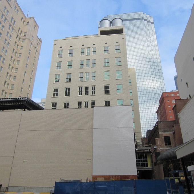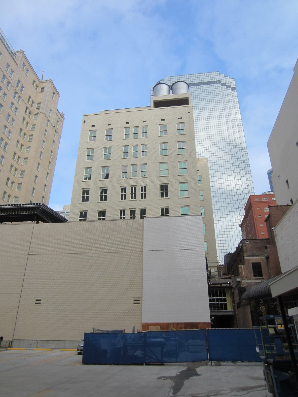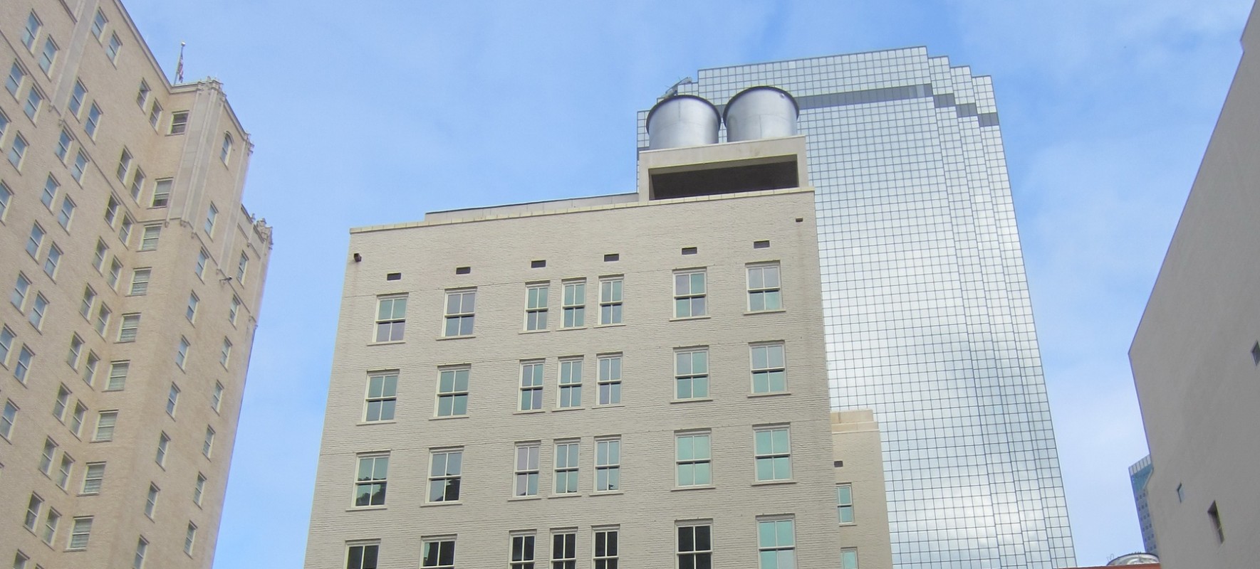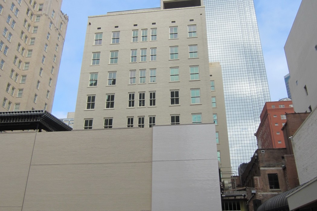 The Joule Hotel in downtown Dallas expanded its facility by acquiring and renovating four buildings constructed circa 1920 to 1940 located adjacent to its original property. The renovated building included the 1604 Main Street and 1511 Commerce Street buildings. The 1604 Main Street building is a 9-level cast-in-place concrete structure. The floor framing typically consists of a two-way flat slab with spandrel beams. The 1511 Commerce Street building is a two level cast-in-place concrete structure. The floor framing system varies by floor level and bay. The floor and roof framing systems include beam-supported flat plate slab, wall-supported flat plate slab, concrete pan joists, and concrete on metal deck.