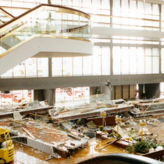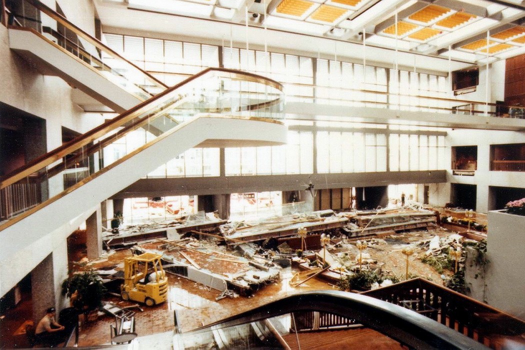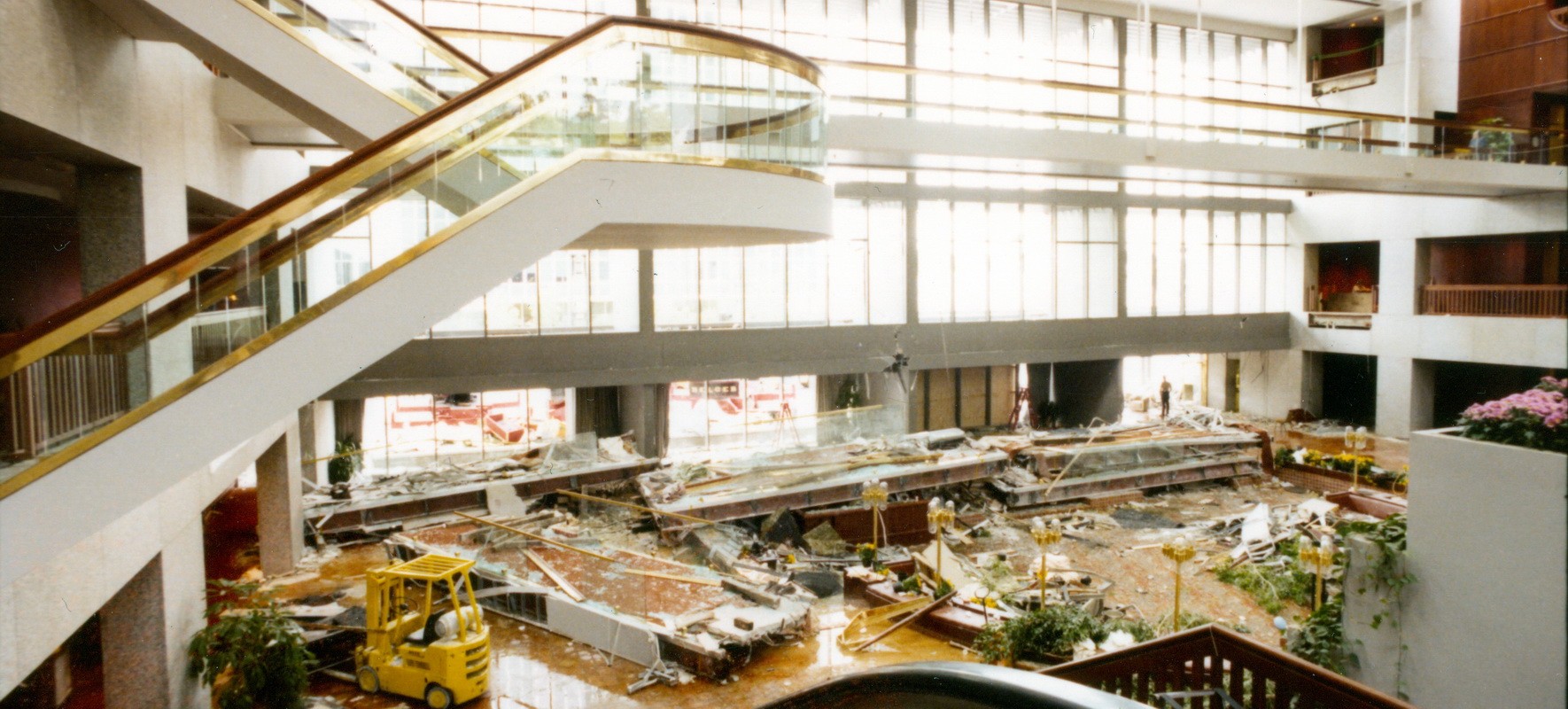 On July 17, 1981, during a weekly dance held at the hotel, the connection supporting the middle section of the fourth-floor walkway failed, causing it and the second-floor walkway it supported to collapse onto the crowded atrium floor. Totaling 212 injuries and 113 casualties, it was the most devastating structural collapse in United States history. In response, the client immediately sought an expert to investigate the circumstances leading to the failure.