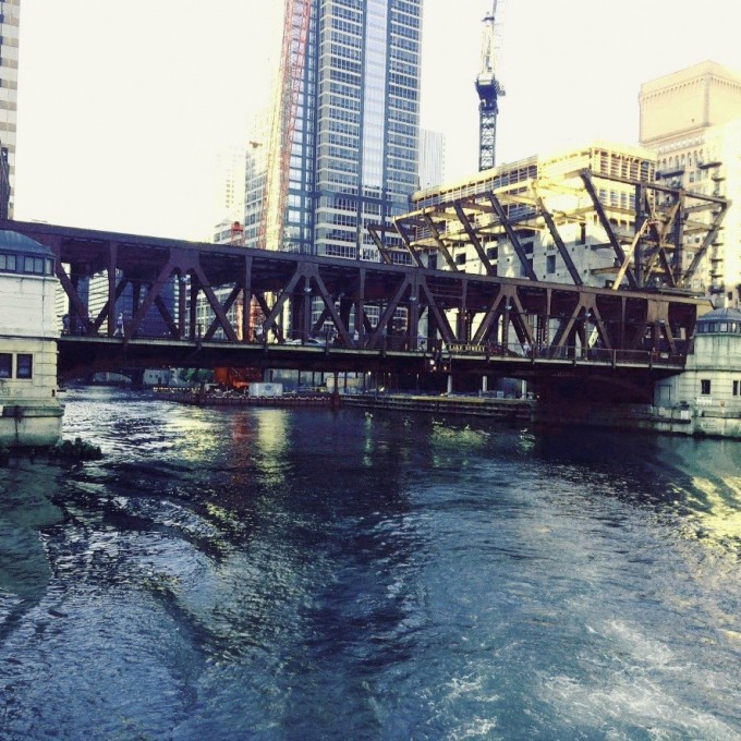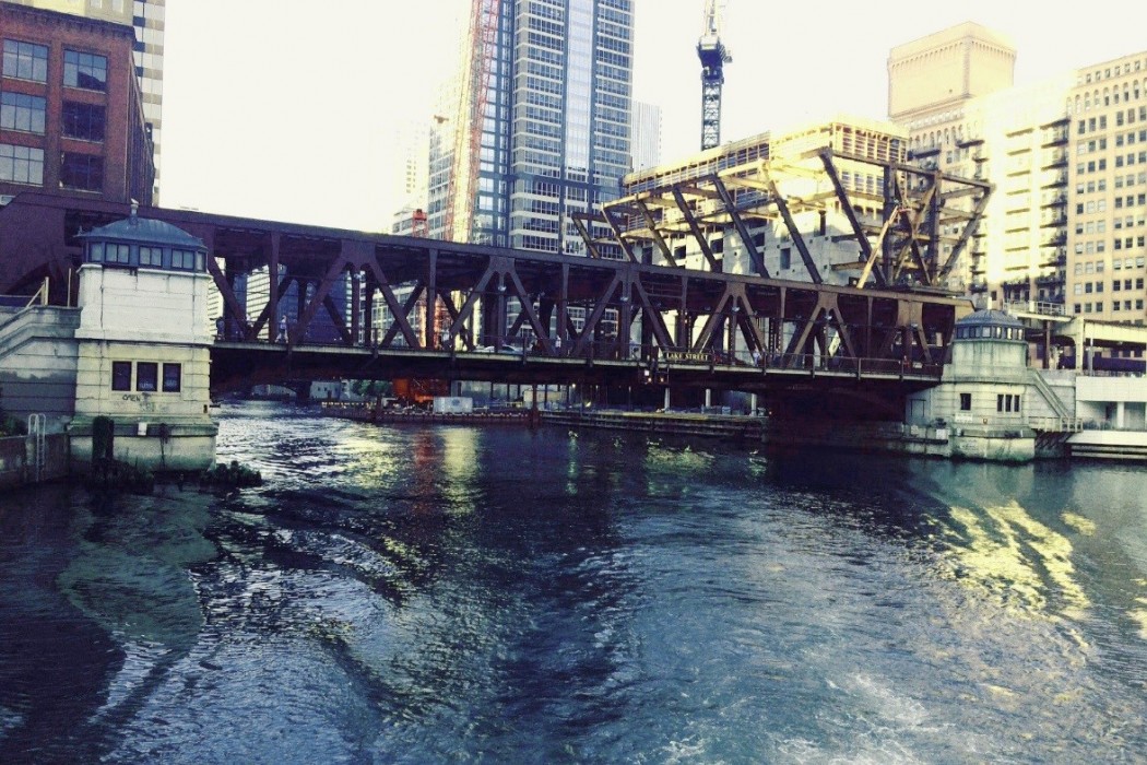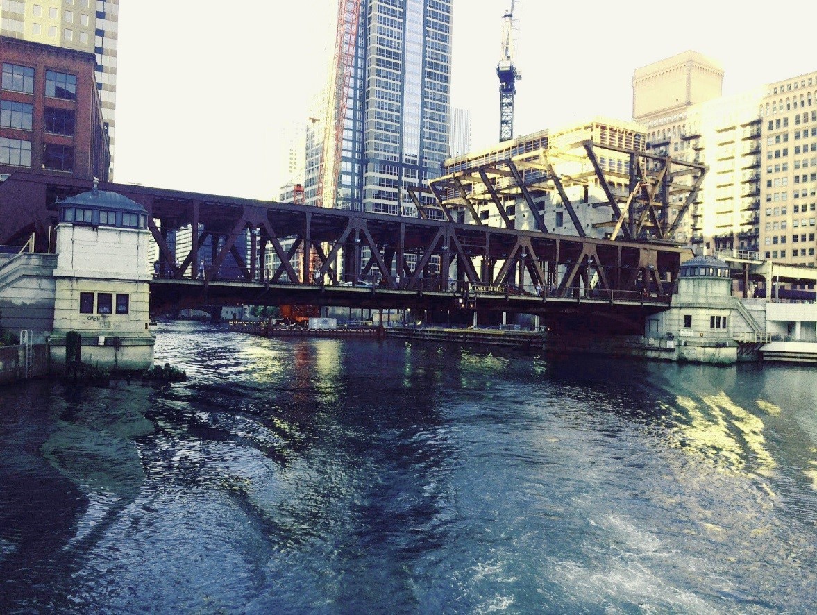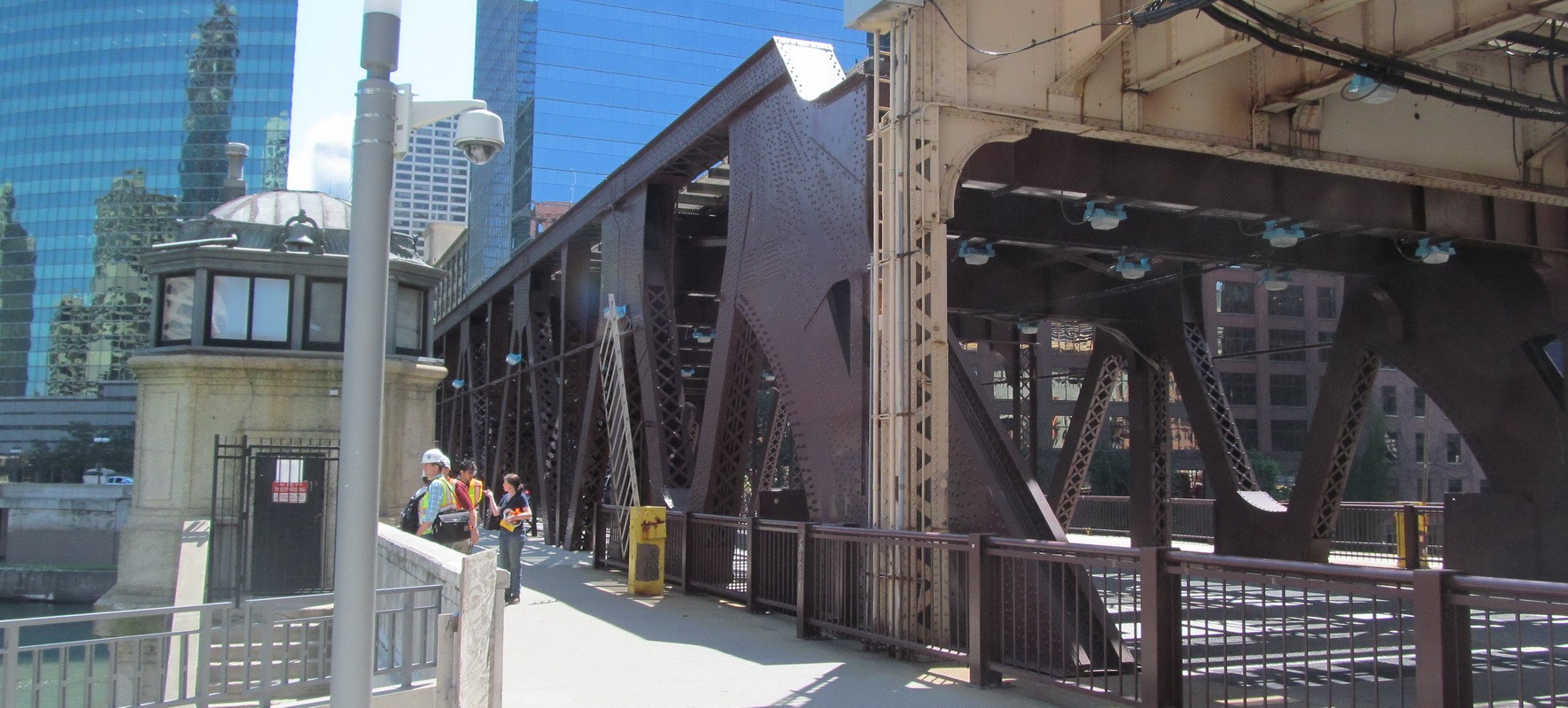The Lake Street Bridge is a double-deck bascule bridge that was constructed circa 1914. The bridge supports two lanes of traffic on its lower level and two CTA tracks on its upper level. The bridge superstructure is composed of two bridge "leafs" that cantilever from the bridge substructures on each side of the river. Each leaf is composed of two identical main trusses that support transverse beams that carry the roadway and track loading. The bridge substructures consist of a cast-in-place reinforced concrete pit supported on four concrete caissons at each end of the bridge.