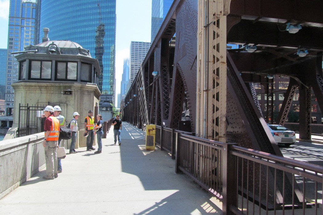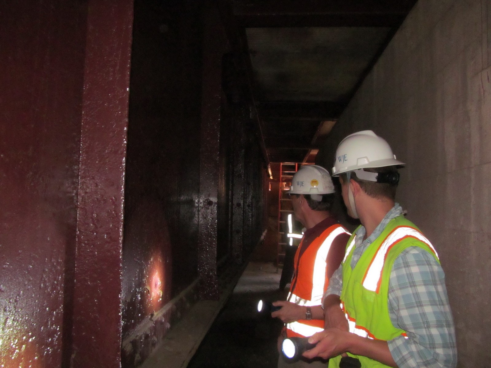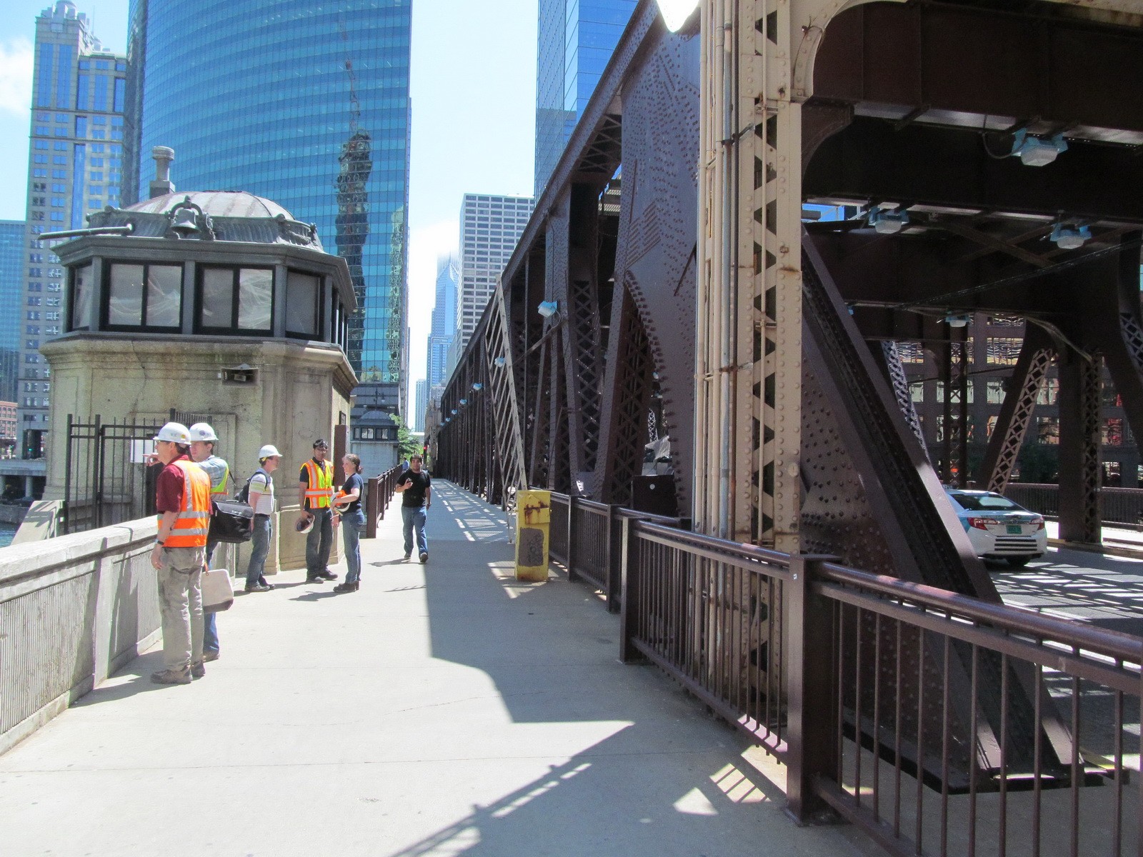 The steel superstructure of the Lake Street Bridge was to be lifted to facilitate repair of some of the deteriorated steel elements. The lifting concept involved construction of two shoring towers to support and lift each bridge leaf. The shoring towers were to be built inboard of the main bridge trusses and supported from below on the concrete pit structure below the bridge bearings. The Chicago Department of Transportation tasked WJE with evaluating the structural capacity of the pit structure and its ability to support the loads from the shoring towers.