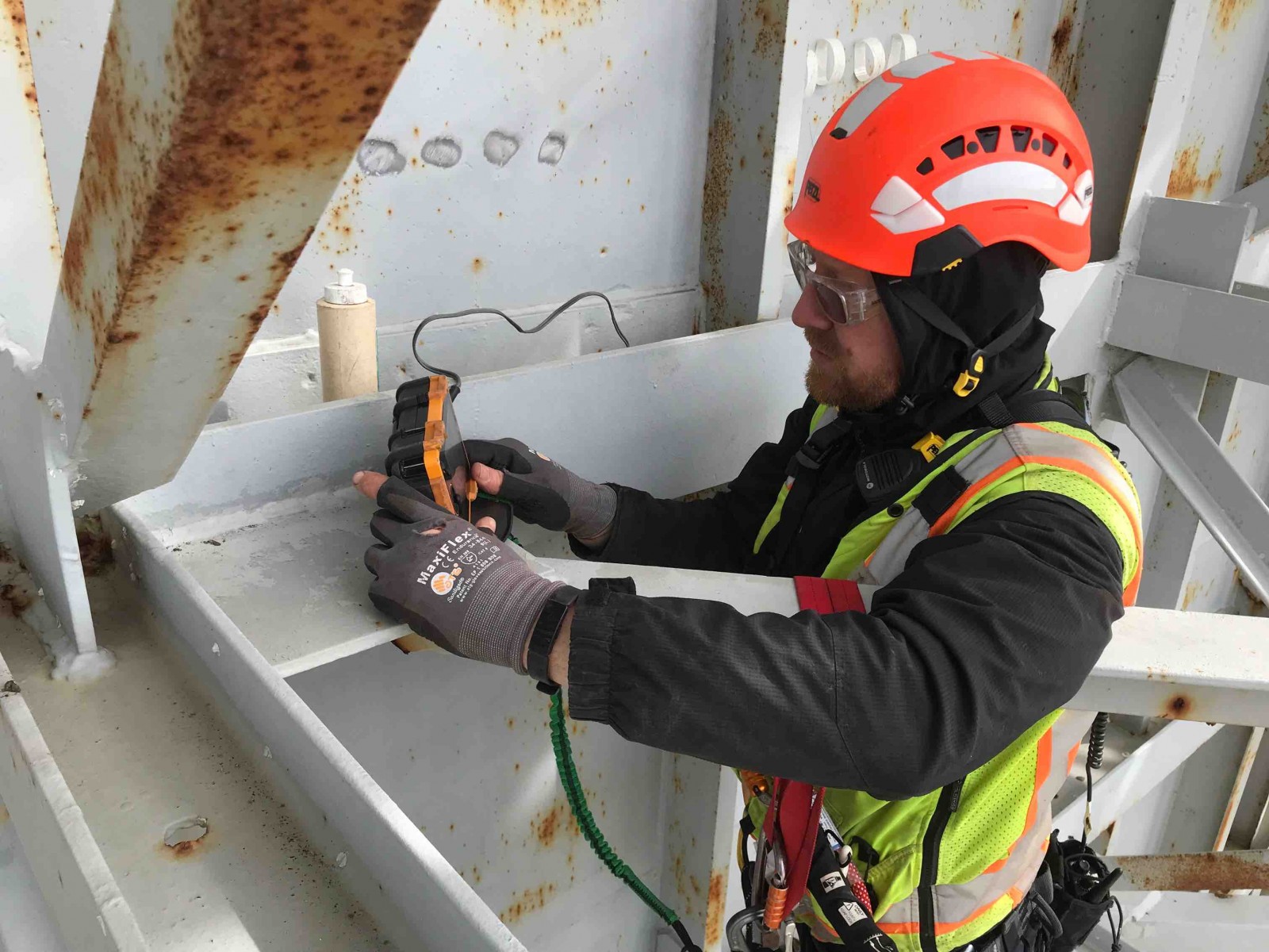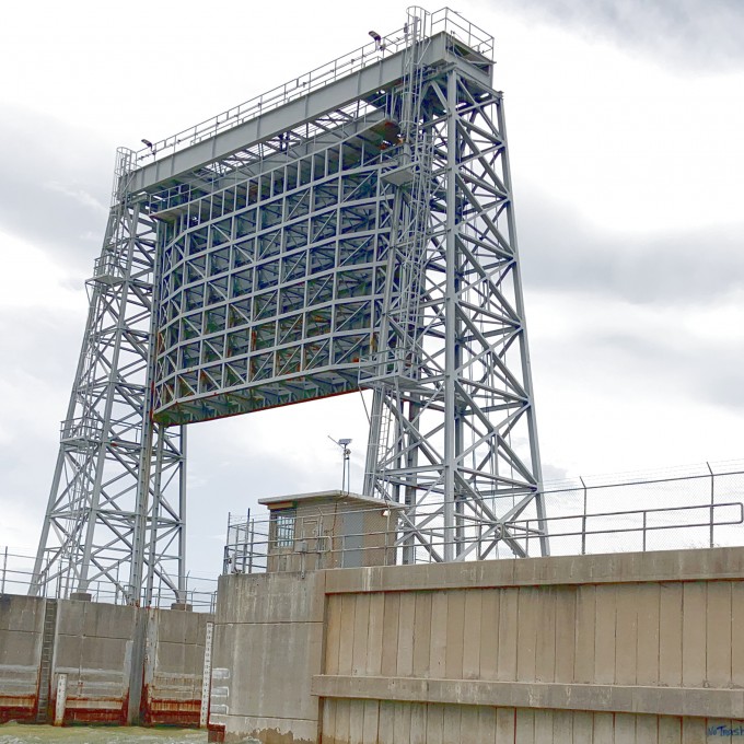 WJE performed a structural steel, mechanical, and electrical assessment of Tide Gate. The steel structure assessment consisted of an above-water, arms-length visual survey of the structural steel framing and the associated coating system of each tower, bridge, and liftgate. The coating investigation included nondestructive evaluation techniques and material extraction for laboratory study. The field assessment was performed from the ground level and accessible portions of the structure by rope access techniques.