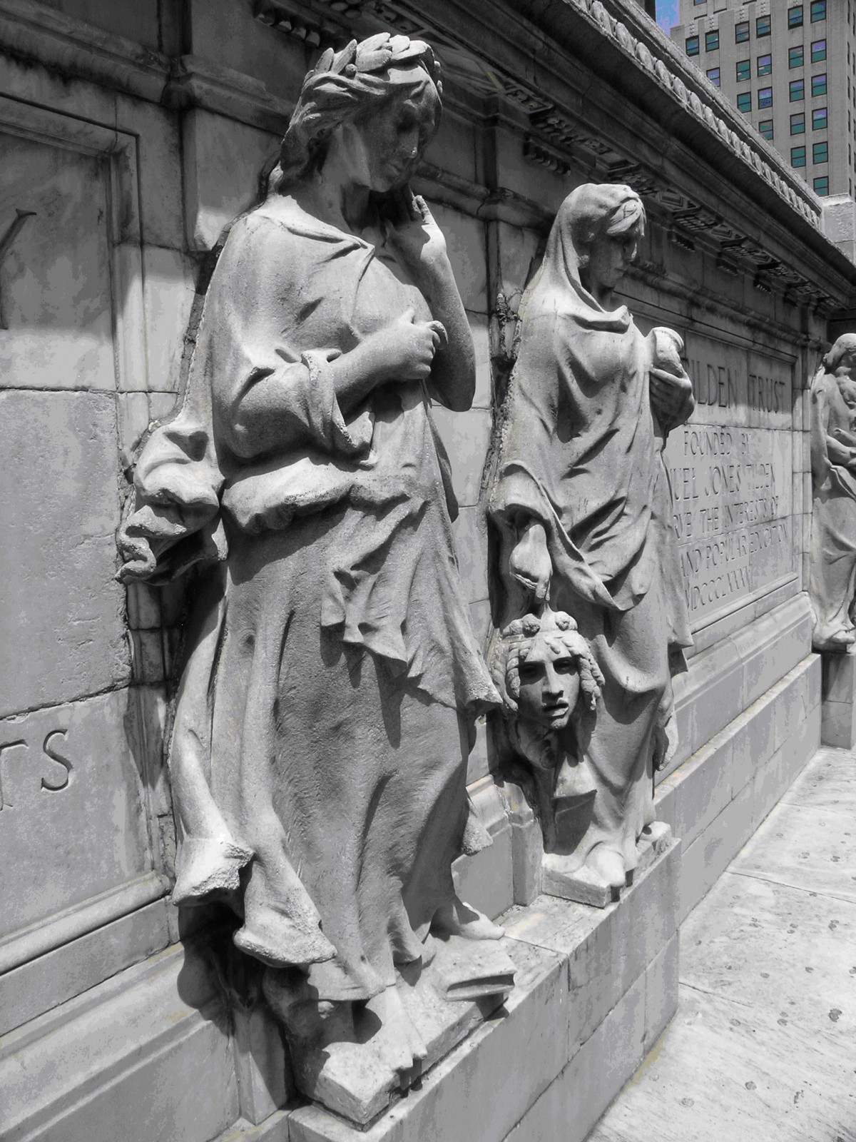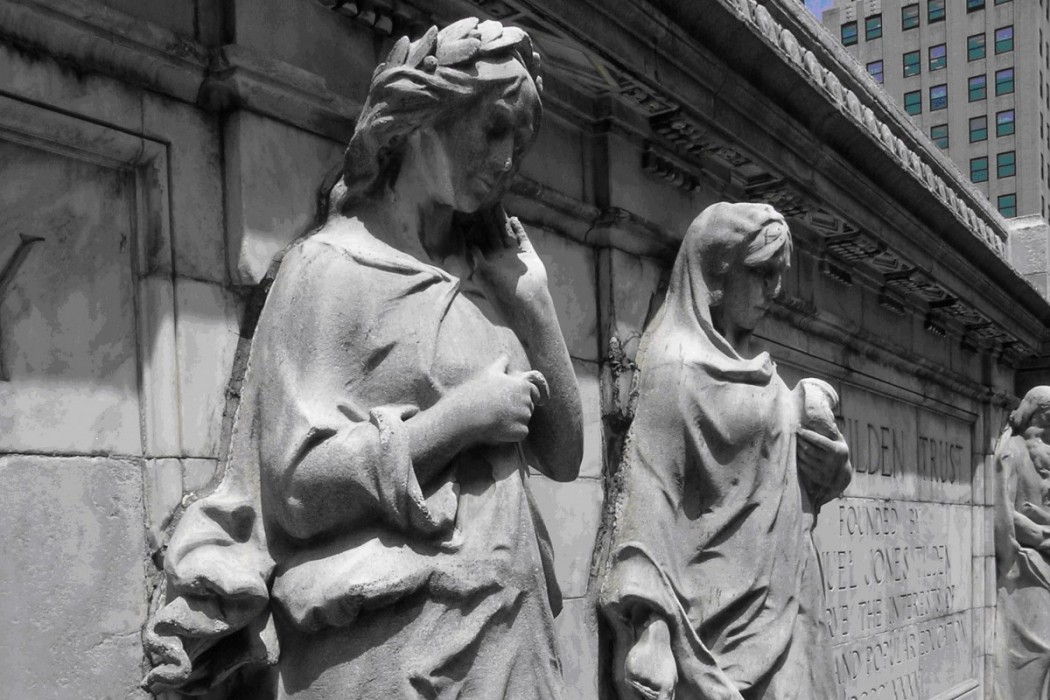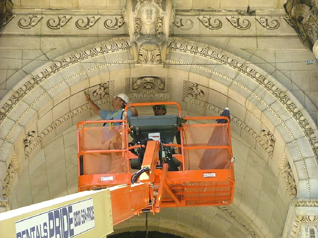 A century of exposure to acid rain, diesel exhaust, and pigeon guano had left the exterior of the New York Public Library (NYPL) in need of extensive restoration. The building's carved marble architectural elements and fine art sculptures were deteriorated, the Tiffany bronze windows and grilles were oxidized, the roofs were damaged, and the brilliant white Vermont marble facade had lost its sparkle. WJE was selected to design and oversee cleaning and repairs of the library in anticipation of the building's 100th anniversary celebrations.