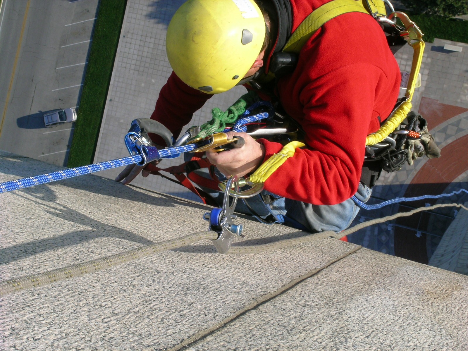 After reviewing documentation of the memorial's original construction and analyzing its previous repairs, the experts at WJE used special access techniques, including rappelling and swing stages, to conduct a close-up visual inspection of the entire memorial and collect concrete and granite samples for testing in WJE's laboratories.