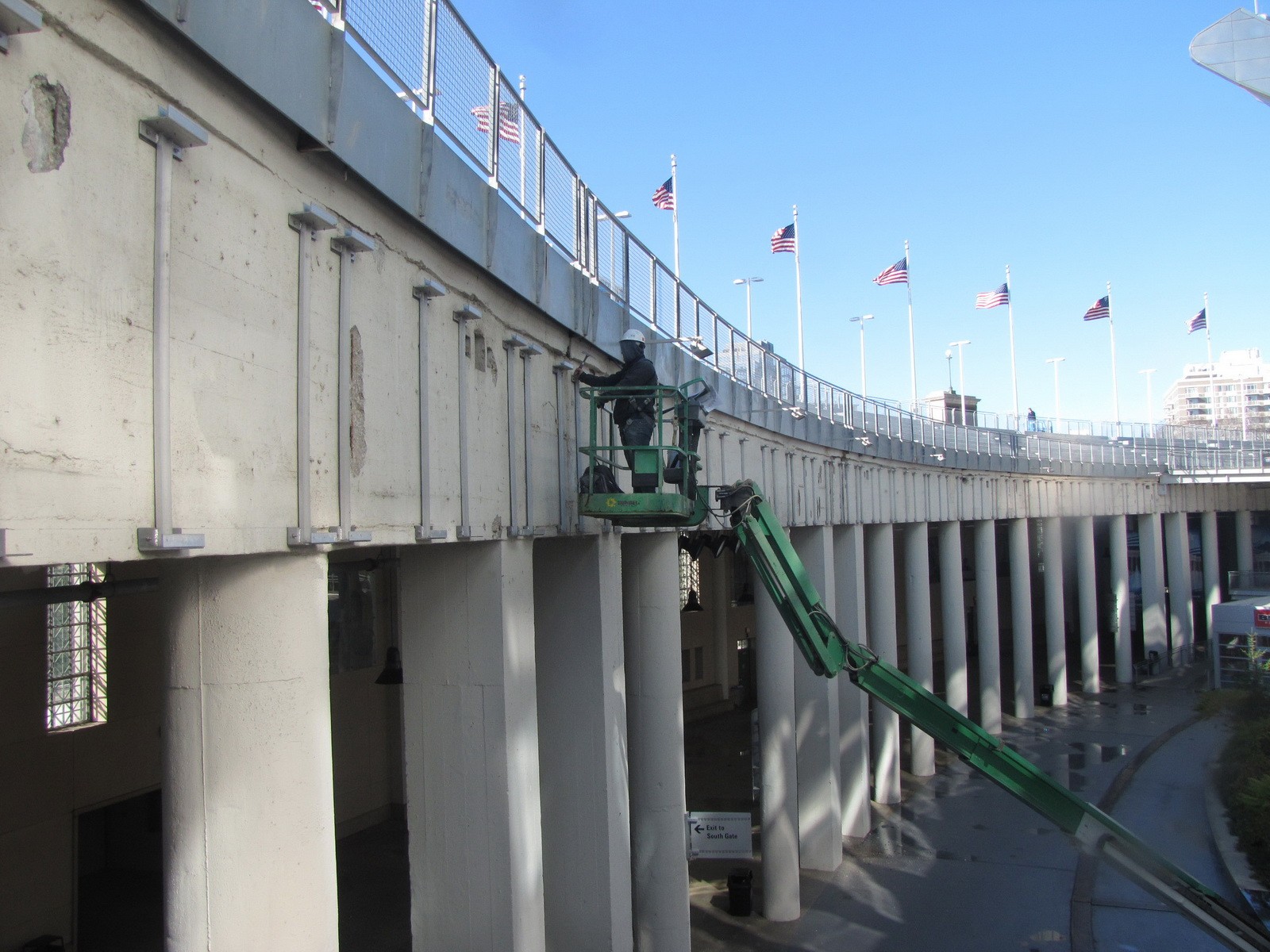 2004–date: Evaluations and repair initiatives undertaken as needed, including facade concrete repairs, expansion joint repair/replacement, horseshoe promenade slab repairs, parking garage inspections and repairs, and davit testing