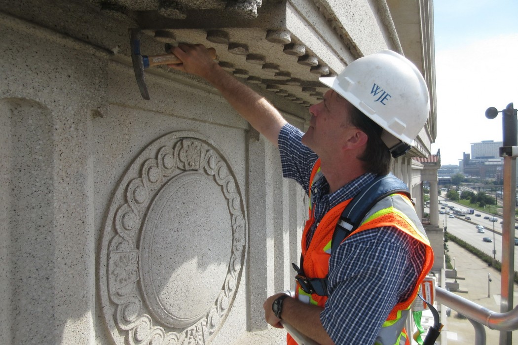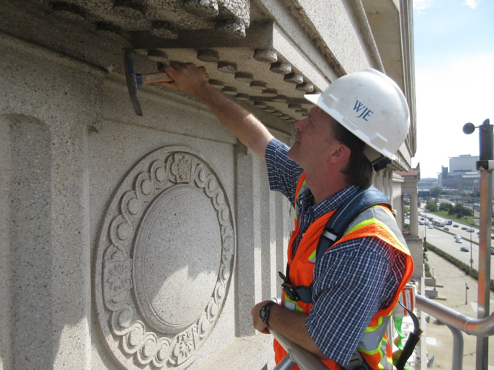 2017–date: Annual close-up inspections and repairs for historic cast stone facade; cast stone repairs in phased approach