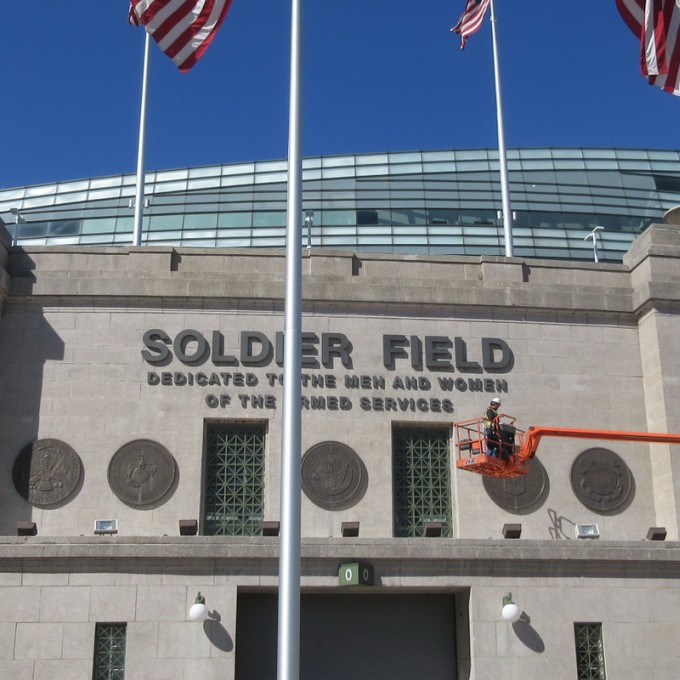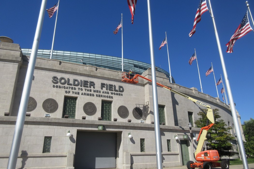 Soldier Field was originally constructed in 1925-26 and dedicated in honor of the soldiers of World War I. The colonnades were constructed of precast and cast-in-place concrete formulated to resemble granite. The concourses and grandstands were constructed of reinforced structural concrete. The original concrete has experienced deterioration over the years due primarily to corrosion of the embedded reinforcing steel from chlorides and carbonation. The stadium underwent a major rehabilitation in 2002-2003 in which the historic perimeter of the stadium was retained, but the interior was replaced with a new stadium structure.