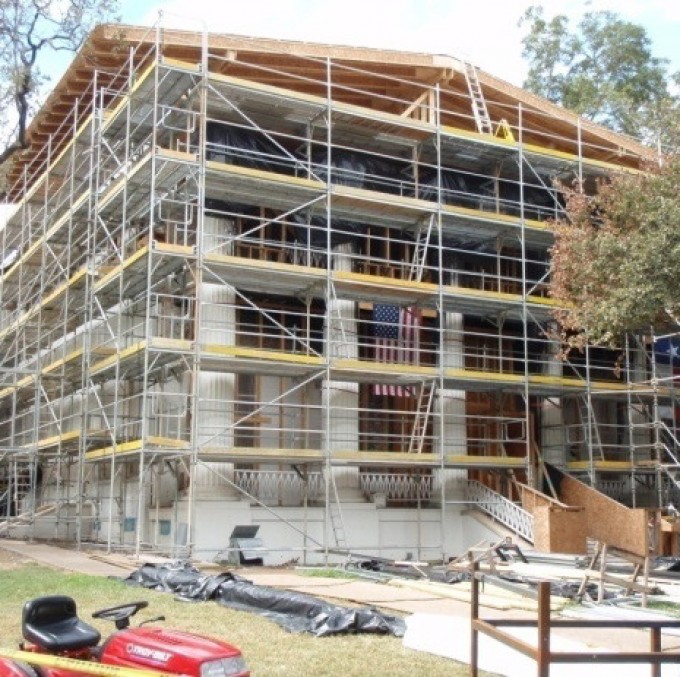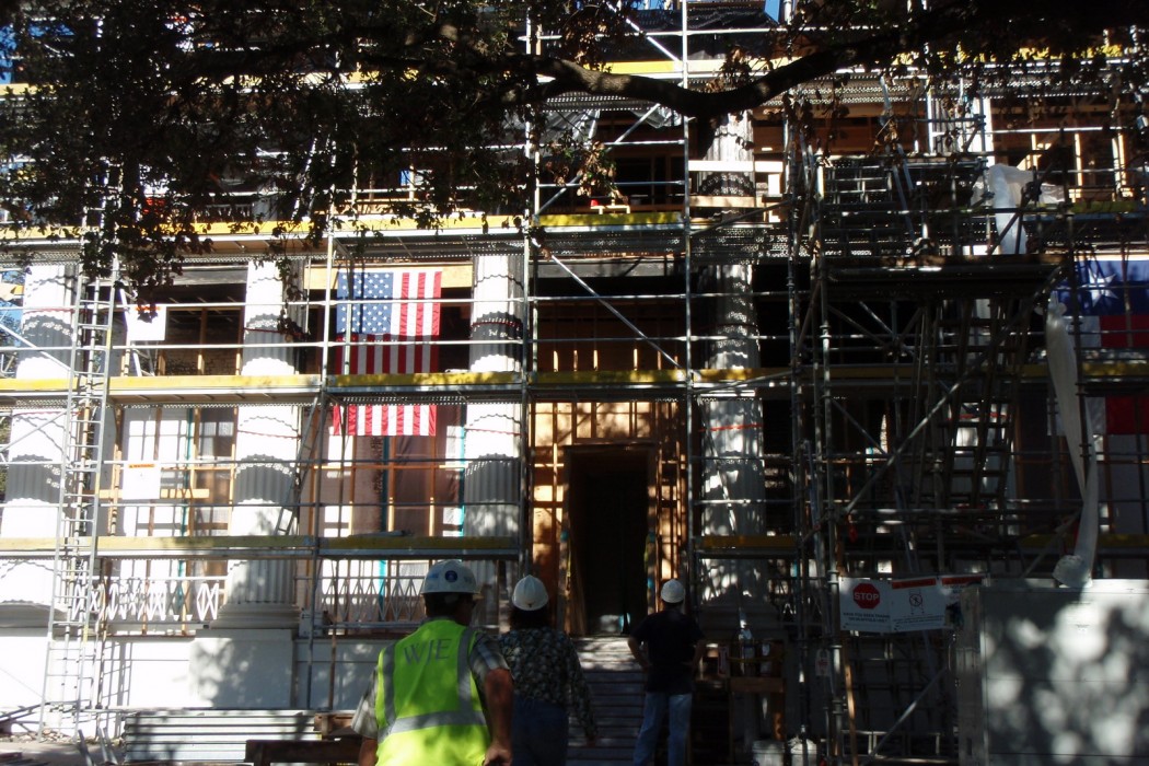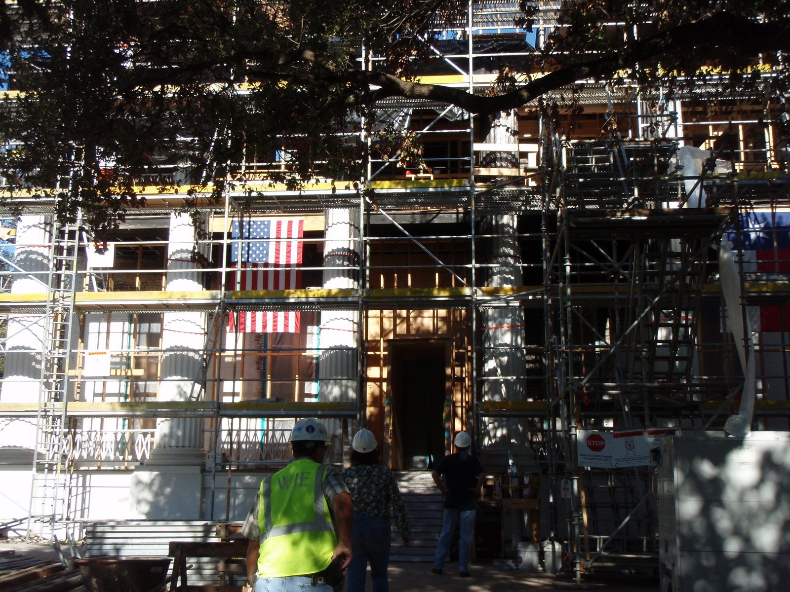 On June 8, 2008, the mansion, which was under renovation, was significantly damaged by a fire. During the post-fire assessment, concern developed regarding the structural integrity of the load-bearing brick masonry walls. Terracon Consultants, on behalf of the Texas Facilities Commission, retained WJE to assess the original 1856 portion of the building and the interface of the original portion with the 1914 addition.